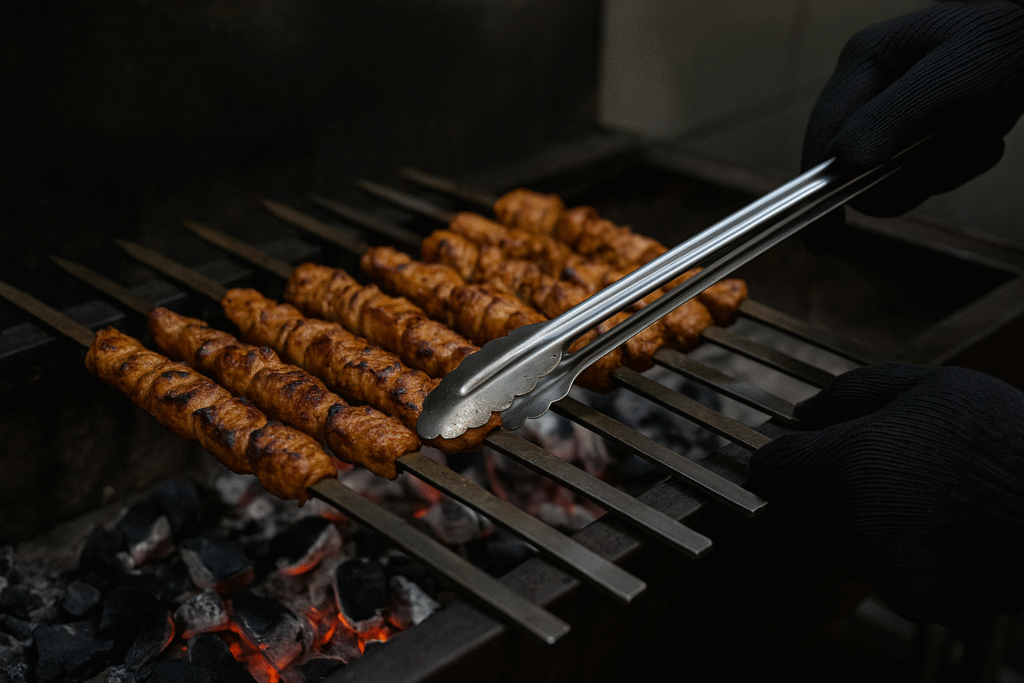 Our Rayalaseema spice philosophy is bold yet balanced, and the same discipline governs safety. Fiery Guntur chilli marinades are mixed in small, timed lots; yoghurt-based blends are kept cold and discarded on schedule; seafood is marinated to contour, not drown, so it stays springy on the grill. As heat climbs, vigilance rises too: hot-holding temperatures are recorded, and finished platters don’t linger under pass lamps—they move. This is how Hyderabad BBQ food safety and big flavour coexist.