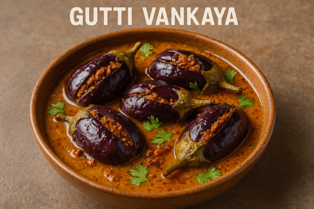 Baby brinjals stuffed with a roasted peanut-sesame-spice paste, simmered to silky perfection. The sauce is nutty, spicy, and slightly sweet from onions. A must-try with jonna rotte.